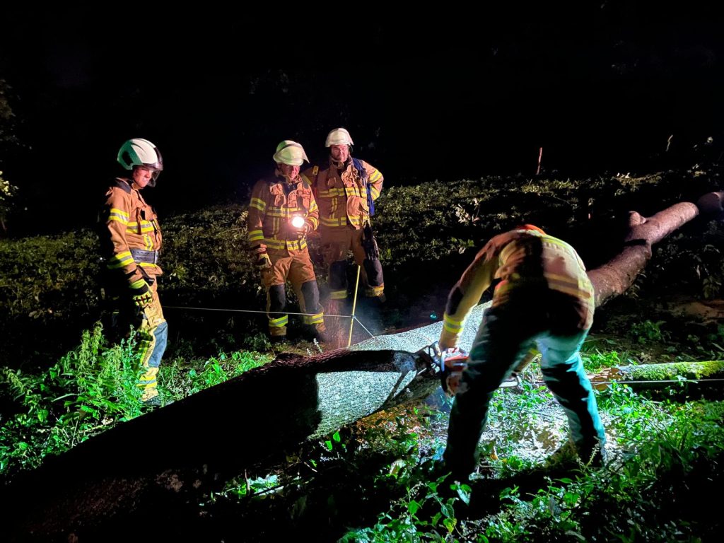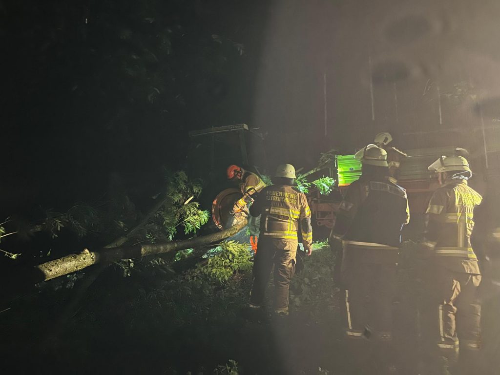 Nach dem Gewitter vergangene Nacht mussten zahlreiche Bäume und Äste von Straßen und Wegen beseitigt werden. Dazu kam noch eine gemeldete Rauchentwicklung im Freien.