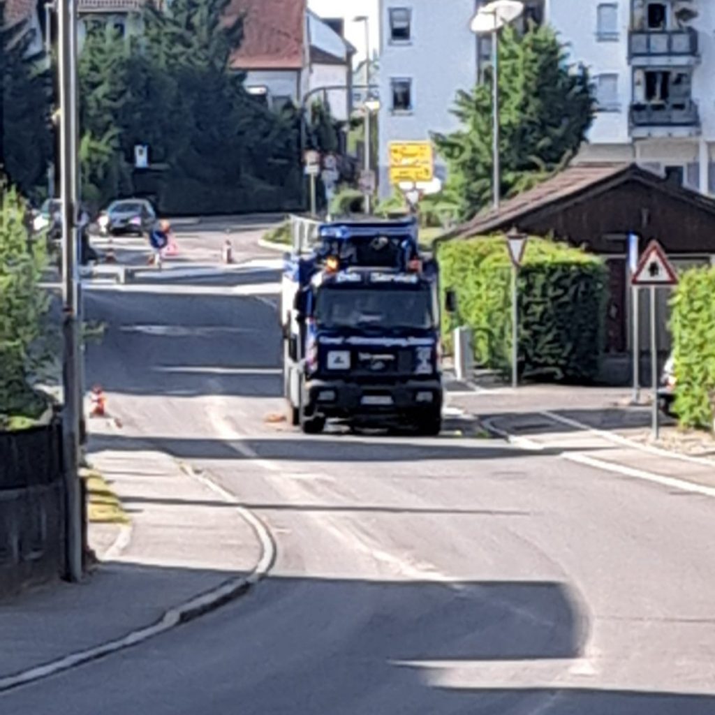 Aufgrund eines Defektes am Tank eines LKW trat während der Fahrt Kraftstoff aus. Der ausgelaufene Kraftstoff, der sich über mehrere hundert Meter verteilte, wurde durch Ölbindemittel aufgenommen. Des weiteren musste in den Kanal gelaufener Kraftstoff, nach Entscheidung des Fachdienstes Umwelt und Arbeitsschutz des Landratsamtes, von einer Fachfirma abgesaugt werden und der Kanal gespült werden.